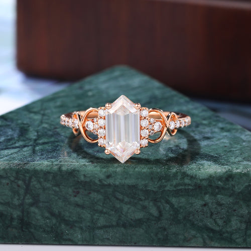 Vintage Oval Moissanite white gold Engagement Ring Set, Cluster Rose/white/yellow Gold Bridal Wedding band -