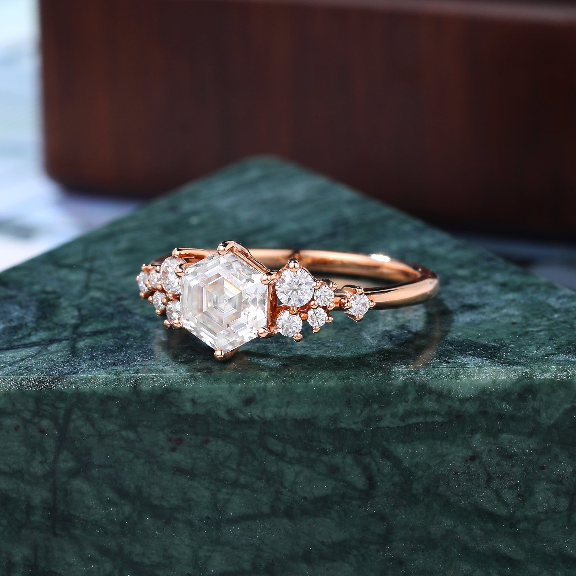 1.0ct Hexagon cut lab-grown Diamond engagement ring .10k /14k/18k gold